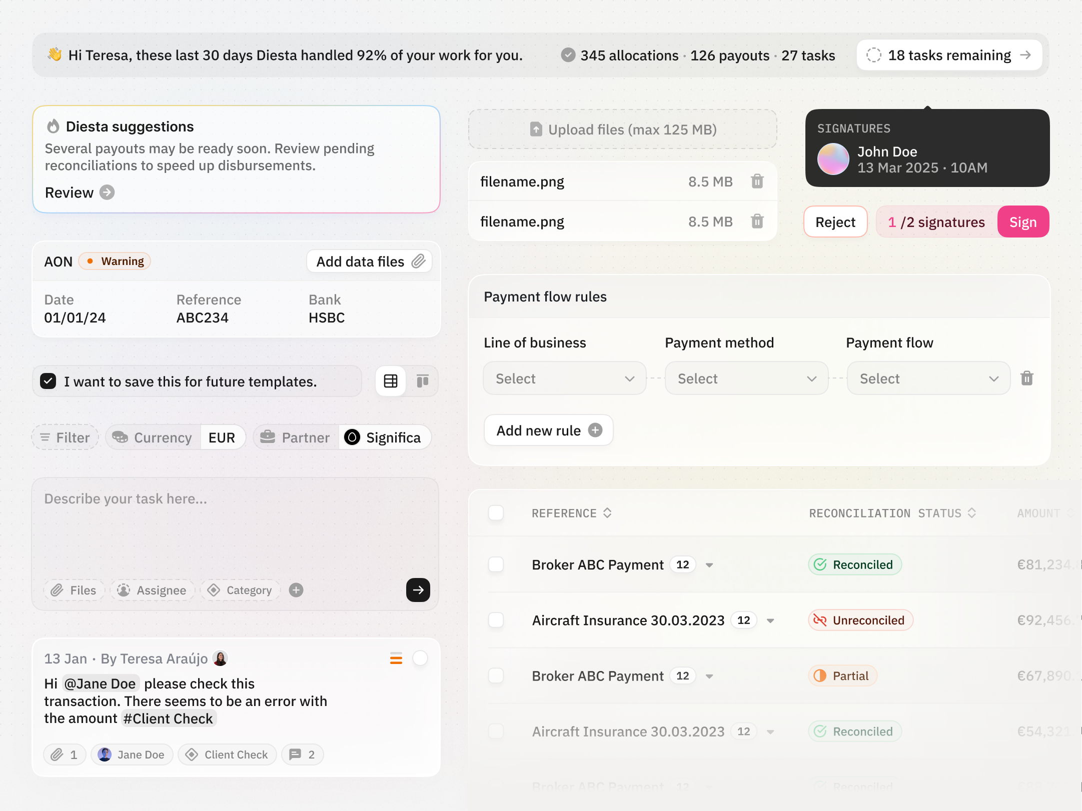 When we pay for insurance, be it house, car, health, pet… that money bounces between brokers, intermediaries, and insurers, splitting into taxes, commissions, and premiums along the way. Behind the scenes, it's manual reconciliation and Excel spreadsheets at scale.