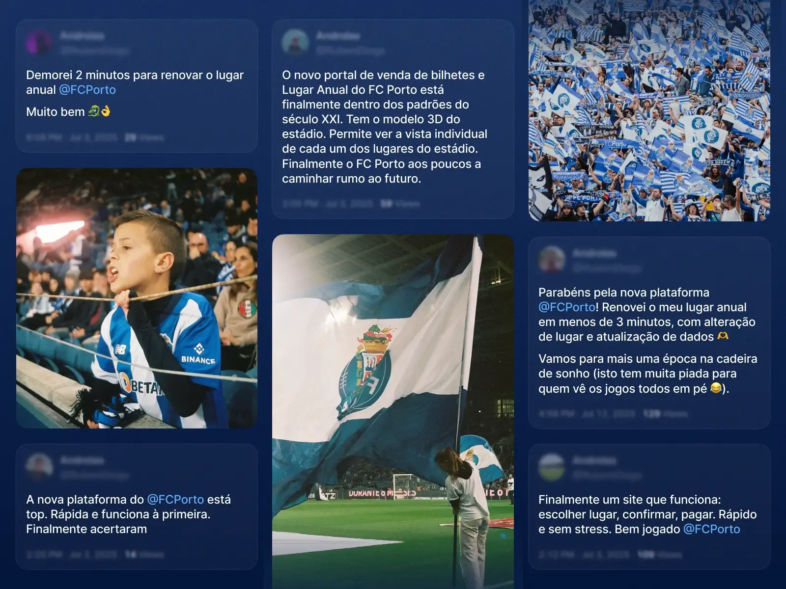 Launching during the season ticket renewal campaign meant thousands of fans using the platform from day one. We didn't wait for bug reports to filter through internal channels. We monitored Reddit, X, and FC Porto's forums directly, seeing issues as fans experienced them and shipping fixes in real time.