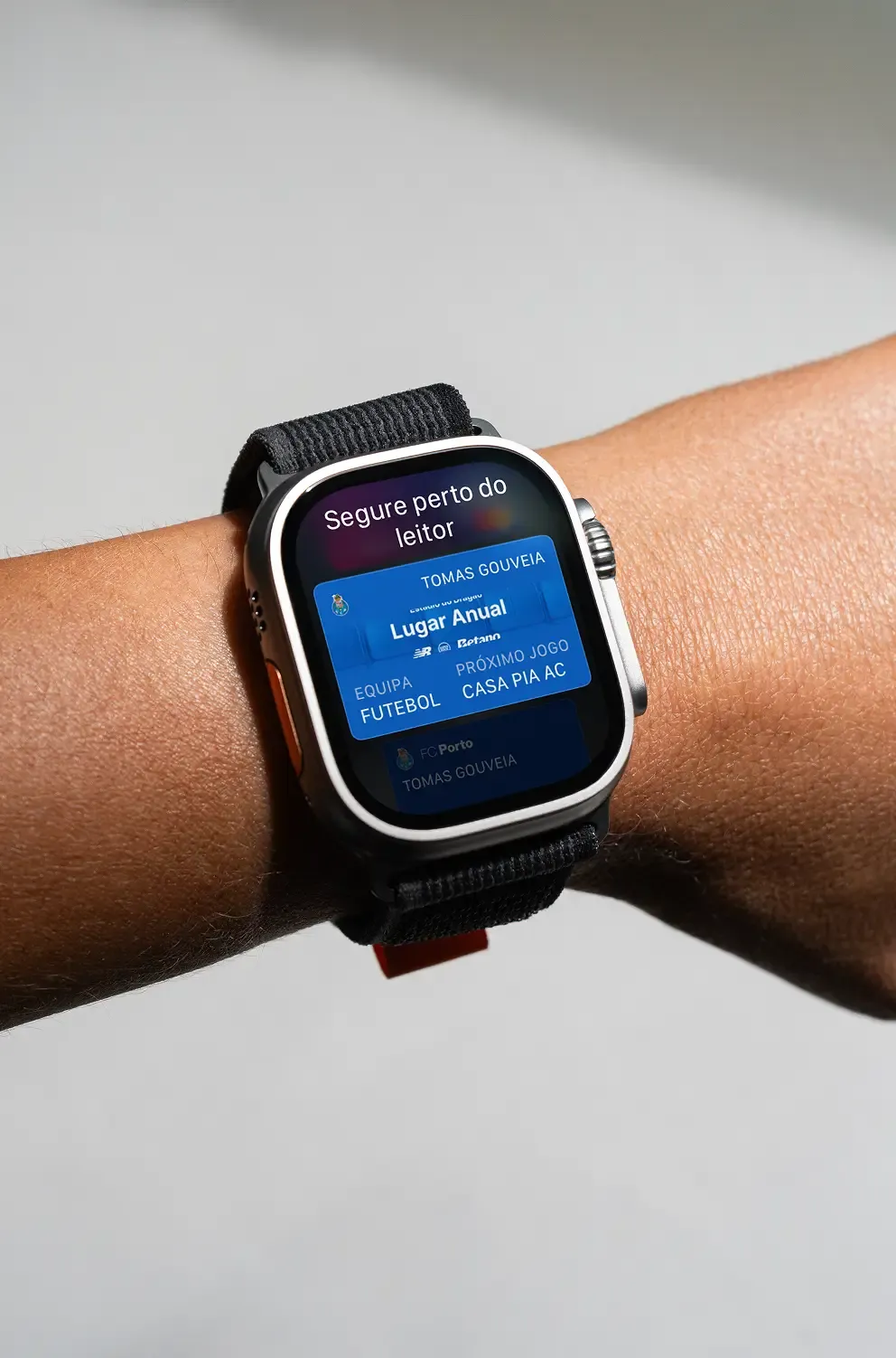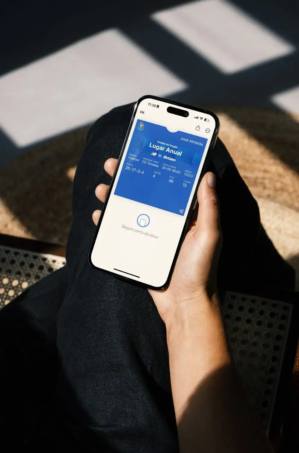 The digital access card lives in your Apple Wallet or Google Wallet. We designed and implemented this coordination with FC Porto's integrated managing system. Add it once to your device and it updates automatically for every match. When you arrive at Estádio do Dragão, just tap and walk in.